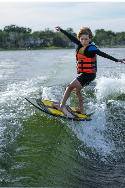 A new thinner profiled, 3’9 length, all-around fun board. A deep swallow tail that can easily break free on the top of the lip yet has the bottom turn drive to get you there quickly. A versatile shape that withstands time in the progression of surfer designs and constructions. A clean bottom, fast rockerline, and smooth rails combined with the swallowtail Fish profile allows it to ride loose, breaking free on the top of the lip, yet still responsive for a bottom turn drive that will get you there on time. You’ll get recreational level ease and stability from this smooth ride – a perfect board for us inlanders looking for wake slashing adaptability. A ride for all styles and abilities. With 3 fins this board will track harder and feel more secure in the water. Also comes with a performance award sticker pack with the various tricks that should be on any grom’s to do list. But most importantly it has a little extra assistance by our propelled turbo 3000 fin.