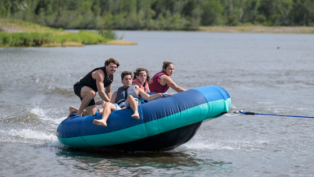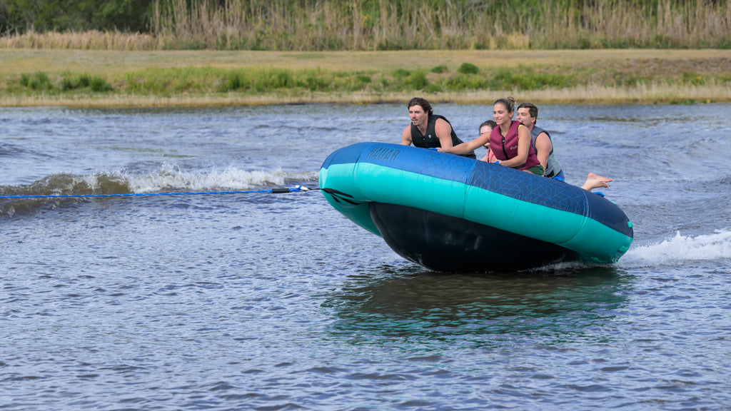 Hang on for the ride of your life. Our all-new oversized ring of fun will have you on the edge of your seat with its high top water speed. Worry not, the donut bolster will bring you right to the brink of tipping but keep you gliding on top of the water