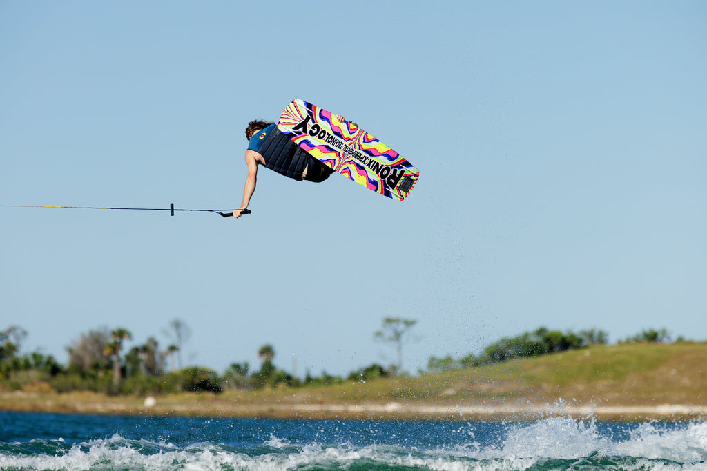 This lightweight reactive mystery got a new shape and a new construction. One of the sport’s greats, Massi, wanted to take the smoothest highend wakeboard and make it even smoother. We elongated the Grip & Release channels on the bottom of the board for improved traction without being “bitey” and then rounded the profile for even more of an effortless release off the wake. We added something that has been in the works for years, PreTension Glass. We created a machine that preloads the fibers before it goes into the mold creating a stiffer more reactive take off but still has a soft, predictable landing. The RXT rockerline carries more momentum out into the flats and creates smoother more predictable take offs. Our secret sauce, Blackout Technology, generates added response through a turn, with more feel and security between rider and board when traveling on the water or jumping off the wake. Unmatched modernization for riders looking for every advantage to ride a forgiving pro model wakeboard with the utmost in top water speed. Created by smart scientists in lab coats that like fast, lightweight wakeboards. A lenient shape that will correct itself without penalizing you when you land off target.