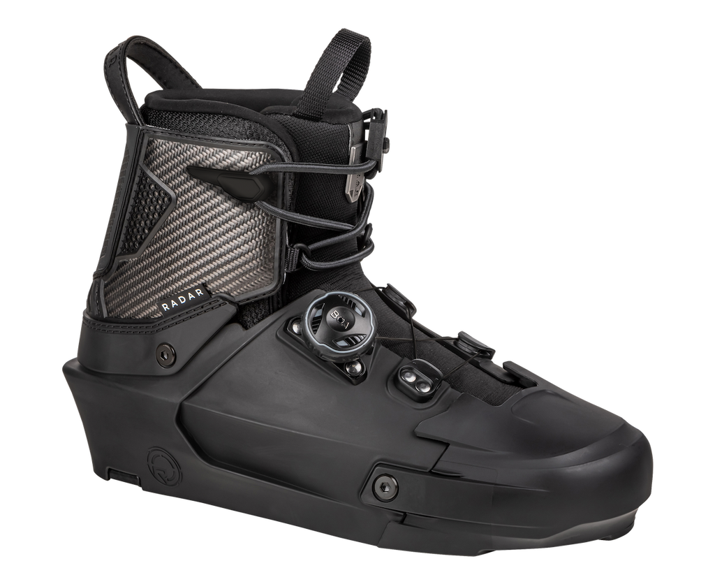 Radar boot design has always been focused on improving your on-water experience through innovation and cutting-edge comfort. By utilizing a hybrid structure, we are able to build a boot that truly wraps around your foot creating an ultimate connection to the ski. This connection results in a lossless power transfer and allows you to feel immediate engagement on the water. Whether you’re riding the premium Vapor boot, our high-end Pulse boot, the legendary Vector or our entry level Prime you’ll feel the difference that comes with riding a Radar boot.